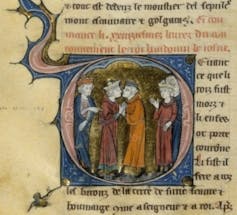 Il arrive même que les deux hommes s’embrassent sur la bouche, sans que cela ne présente la moindre connotation homosexuelle. Ces gestes et ces paroles varient selon les lieux et les moments du Moyen Âge central, constituant une véritable grammaire des signes que les médiévaux arrangent selon les circonstances. Notre actualité dévoile des pratiques semblables au service de la diplomatie internationale – par exemple lorsque les médias se sont émus de la « diplomatie du câlin » pratiquée par Emmanuel Macron avec le premier ministre indien Narendra Modi.