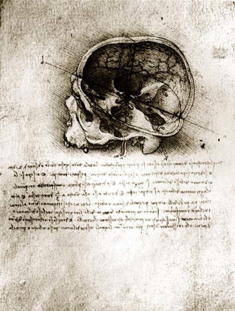 Dessin anatomique d’un crâne, Léonard de Vinci, 1489.