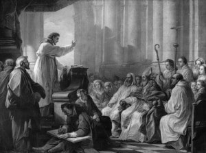 Gravure : « Saint Augustin prêchant », d’après Carle van Loo, c. 1755 [Notre-Dame-des-Victoires, Paris]