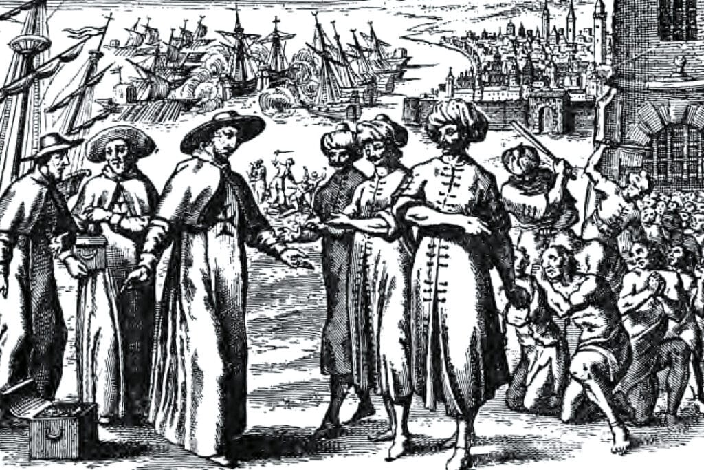 Après plusieurs jours d’attente dans une ville côtière, le pacha local fait dire aux prêtres que les cadeaux prévus pour lui ne sont pas suffisamment fastueux ni précieux. L’un des Trinitaires est alors obligé de retourner à Gibraltar pour trouver d’autres marchandises. Cet épisode n’est que le début d’une interminable série de marchandages et d’intimidations, l’intention étant de soutirer le plus d’argent possible aux rédempteurs. Ce procédé est bien connu des Occidentaux car il est le même à chaque voyage. Enfin, les choses se débloquent et nos courageux prêtres partent en caravane à travers le désert pour se rendre à Meknès rencontrer le roi. Tous les captifs du pays appartiennent au roi du Maroc, il est donc le seul qui puisse leur rendre la liberté.