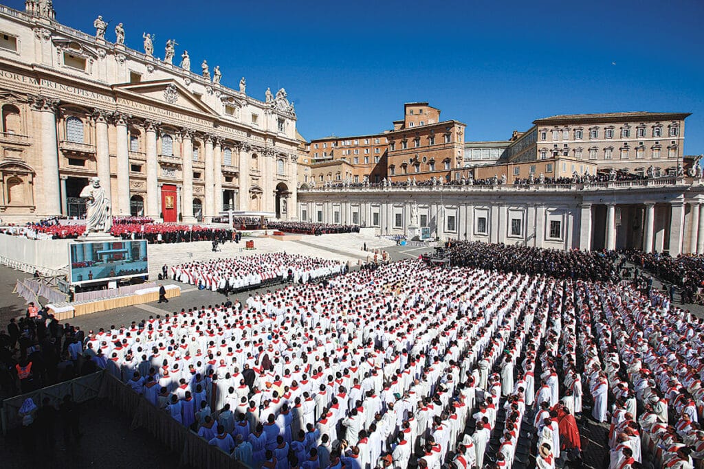 Ce samedi 26 avril à 10 heures, comme les bras d’une mère accueillant ses enfants, la colonnade du Bernin, place Saint-Pierre, enserre les fidèles venus du monde entier rendre un dernier hommage à leur pasteur, et prier pour son âme. Ils sont plus de 250 000 sur la place et dans l’avenue qui mène à la basilique papale. Pendant les trois jours précédents, 150 000 sont allés se recueillir une dernière fois à l’intérieur, devant la dépouille du 266e successeur de Pierre, décédé dans la lumière du lundi de Pâques.