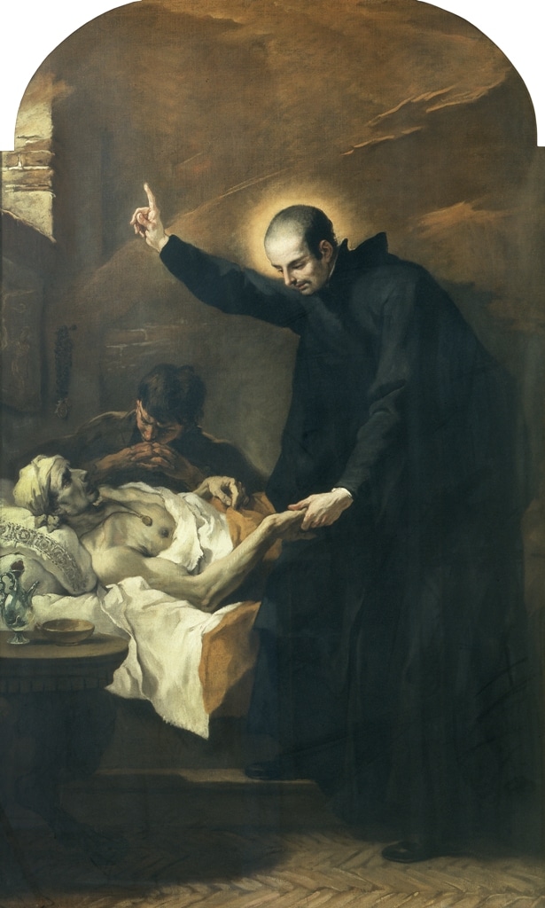 Illustration : « Saint Thomas de Vio réconfortant un mourant » par Sebastiano Ricci, 1704 [Pinacothèque di Brera, Milan, Italie]