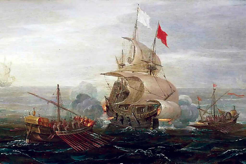 En septembre 1575, le bateau qui ramène Cervantes en Espagne est attaqué par des pirates musulmans. L’équipage et les passagers sont emmenés captifs à Alger. Après bien des tribulations, le futur écrivain est finalement racheté cinq ans plus tard par deux prêtres de l’ordre des Trinitaires qui obtiennent la libération de 500 captifs espagnols. Cette anecdote témoigne de l’omniprésence de la captivité et de l’esclavage en Méditerranée entre le VIIIe et le XVIIIe siècle, ainsi que des relations conflictuelles entre pays catholiques et musulmans.